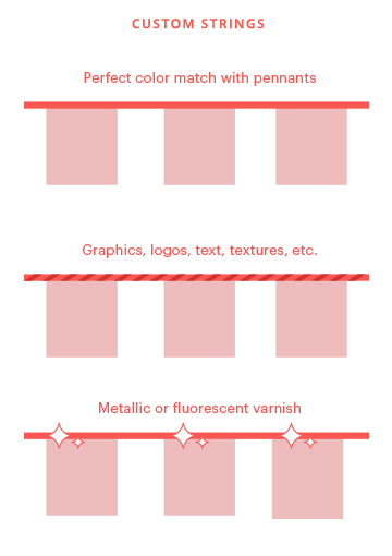 With String Pennants, you can use our traditional shapes or let your creativity fly, especially with our glow-in-the-dark options.