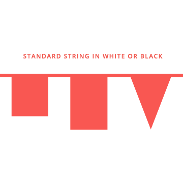 A String Pennant can be a message or slogan of the brand, website link or simply the brand logo. Also, a String Pennant can look like wood or braided rope. For a premium look, we have the silver or color metallic option, along with fluorescent for a glowing effect.